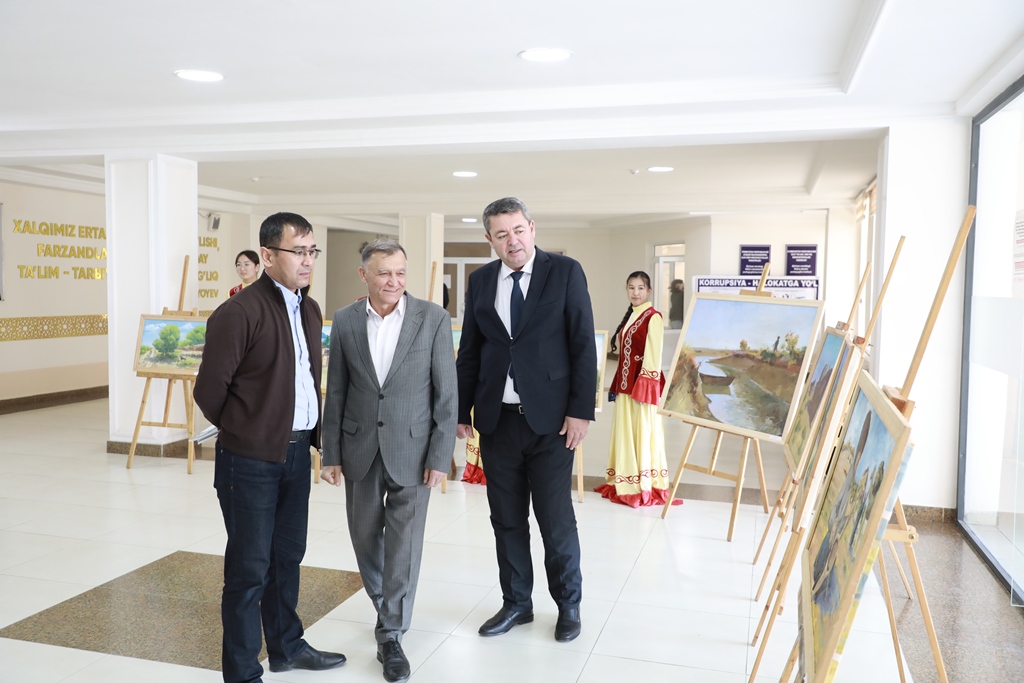 Ilaj sheńberinde miymanlar – belgili shayır Aziz Said hám jazıwshı Isomiddin Pulatov institut student-jaslarınıń qol hám súwretlew óneri úlgileri, hár qıylı jarıs hám tańlawlarda qolǵa kirgizgen tabısları orın alǵan kórgizbe menen tanıstı.