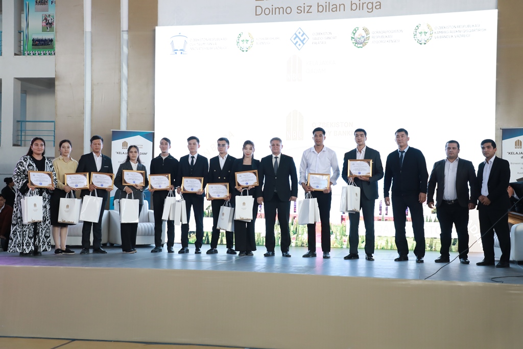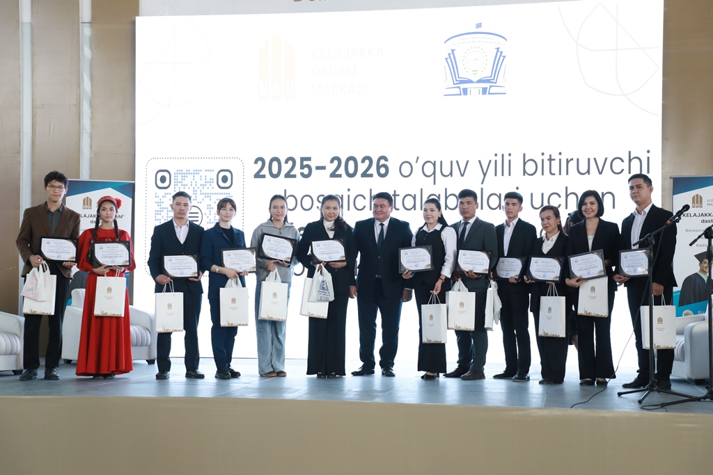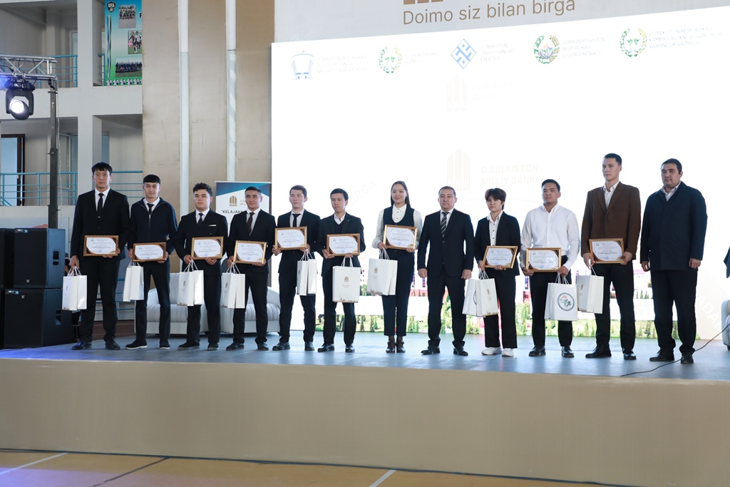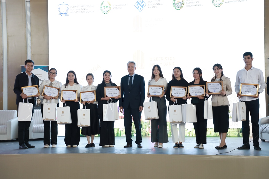 Sonıń menen birge, «Keleshekke qádem» baǵdarlaması sheńberinde jeńillikli kredit alıp, óz isbilermenliklerin jolǵa qoyıp atırǵan bir topar pitkeriwshi studentlerge vaucherler tapsırıldı.