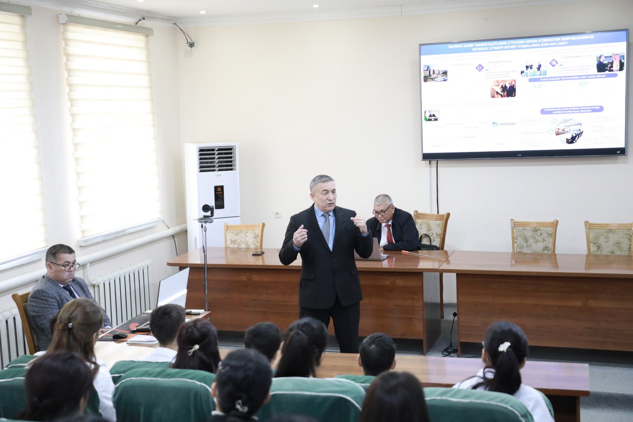 Sabaq juwmaǵında studentler menen ashıq sáwbetlesiw ótkerilip, olardıń qızıqtırǵan sorawlarına juwap berildi hám tema boyınsha pikir-usınıslar tıńlandı.