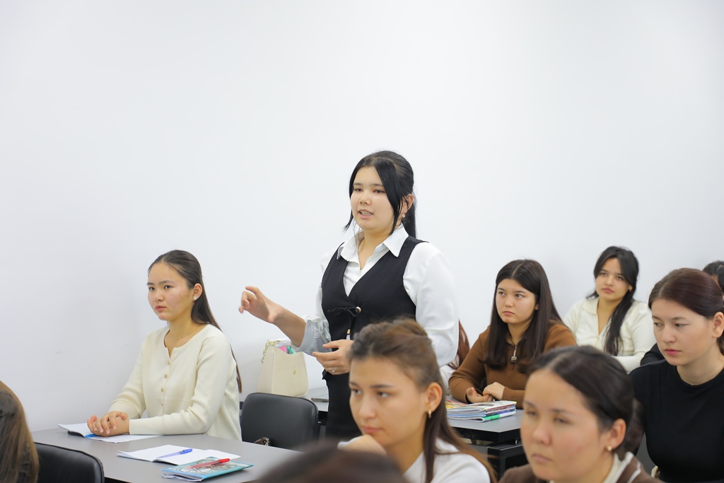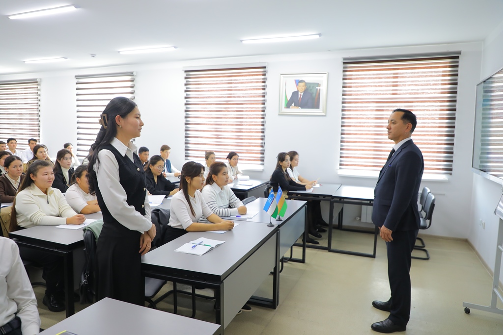 «Ózbekstan bayraǵı» atamasında shólkemlestirilgen sabaq dawamında professor-oqıtıwshılar, pedagog xızmetkerler, tyutorlar hám basqa da qánigeler tárepinen mámleketimiz bayraǵınıń mámleketlik belgi sıpatındaǵı ornı hám roli, onıń áhmiyeti, bayraqtı húrmetlew hám qádirlew, mámleketlik bayraqtan paydalanıw hám oǵan húrmet kórsetiw qaǵıydaları haqqında keń túrde maǵlıwmatlar berilmekte.