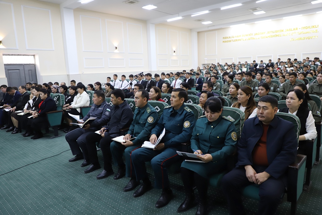 Ushırasıwǵa fakultet dekanlarınıń orınbasarları, tyutorlar, professor-oqıtıwshılar, belsendi studentler, sonday-aq, ishki isler uyımlarınıń juwaplı xızmetkerleri, profilaktikalıq inspektorlar qatnastı.