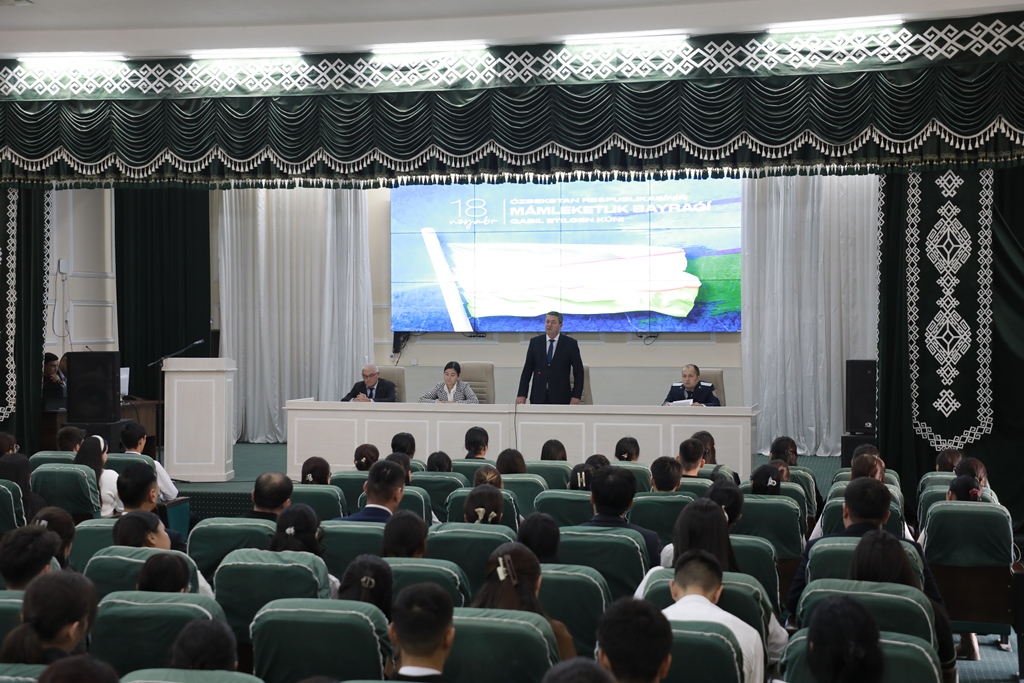 Ilajda sózge shıqqanlar tárepinen atap ótilgenindey, bıyıl mámleketlik suverenitettiń belgilerinen biri bolǵan ǵárezsiz Ózbekstan Respublikasınıń mámleketlik bayraǵınıń qabıl etilgenine 34 jıl tolmaqta. Ózbekstan Respublikası Oliy Kengashiniń 1991-jıl 18-noyabrdegi gezekten tıs VII sessiyasında tastıyıqlanǵan mámleketlik bayraǵı jer júzinde ǵárezsiz Ózbekstan degen mámlekettiń bar ekenligin ańlatadı hám ózinde milliy-mádeniy dástúrlerdi jámleydi.