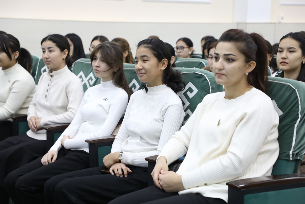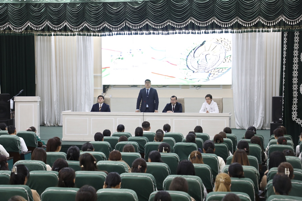 «Konstituciya – insan qádiri, erkinlik, teńlik hám ádillik girewi» súreni tiykarında shólkemlestirilgen ushırasıwǵa instituttıń belsendi student-jasları qatnastı.