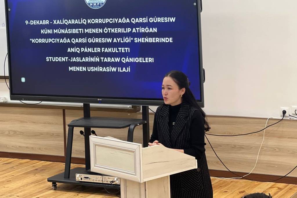 Ájiniyaz atındaǵı Nókis mámleketlik pedagogikalıq institutı Anıq pánler fakultetinde 9-dekabr – Xalıqaralıq korrupciyaǵa qarsı gúresiw kúni hám «Korrupciyaǵa qarsı gúresiw aylıǵı» sheńberinde úgit-násiyat ushırasıwı shólkemlestirildi.