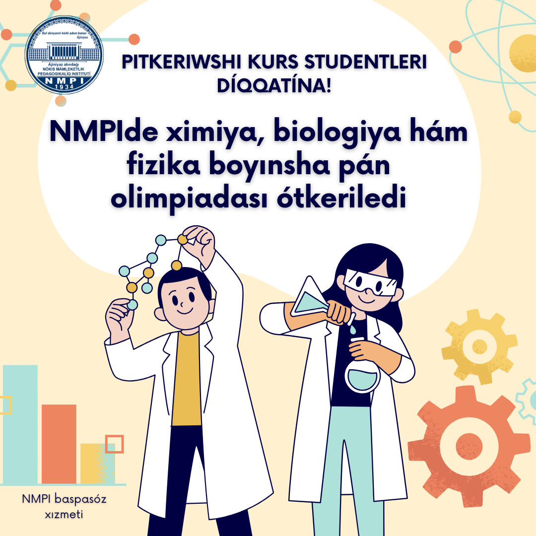 Pitkeriwshi kurs studentleri dıqqatına! NMPIde ximiya, biologiya hám fizika boyınsha pán olimpiadası ótkeriledi