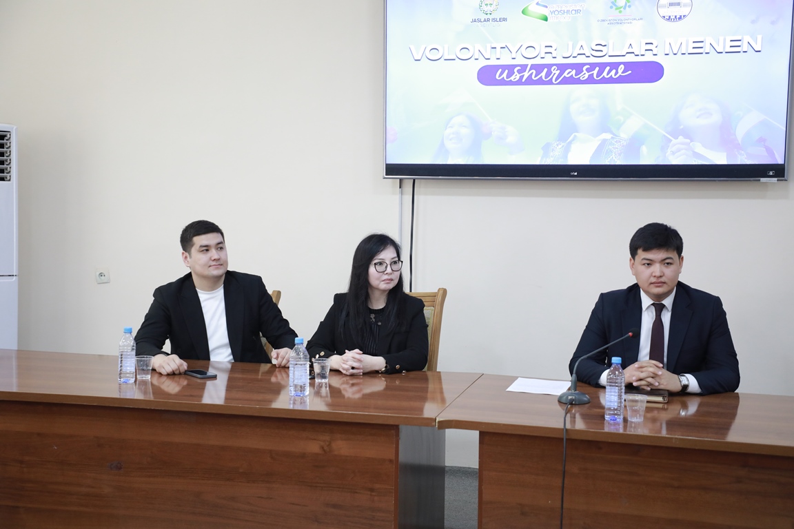 Ushırasıwda jaslar ózlerin qızıqtırǵan sorawlarǵa juwap aldı. Volontyorlıq jumıslarına qosılıw tártibi, ámeldegi platformalar hám joybarlar haqqında ámeliy usınıslar berildi.
