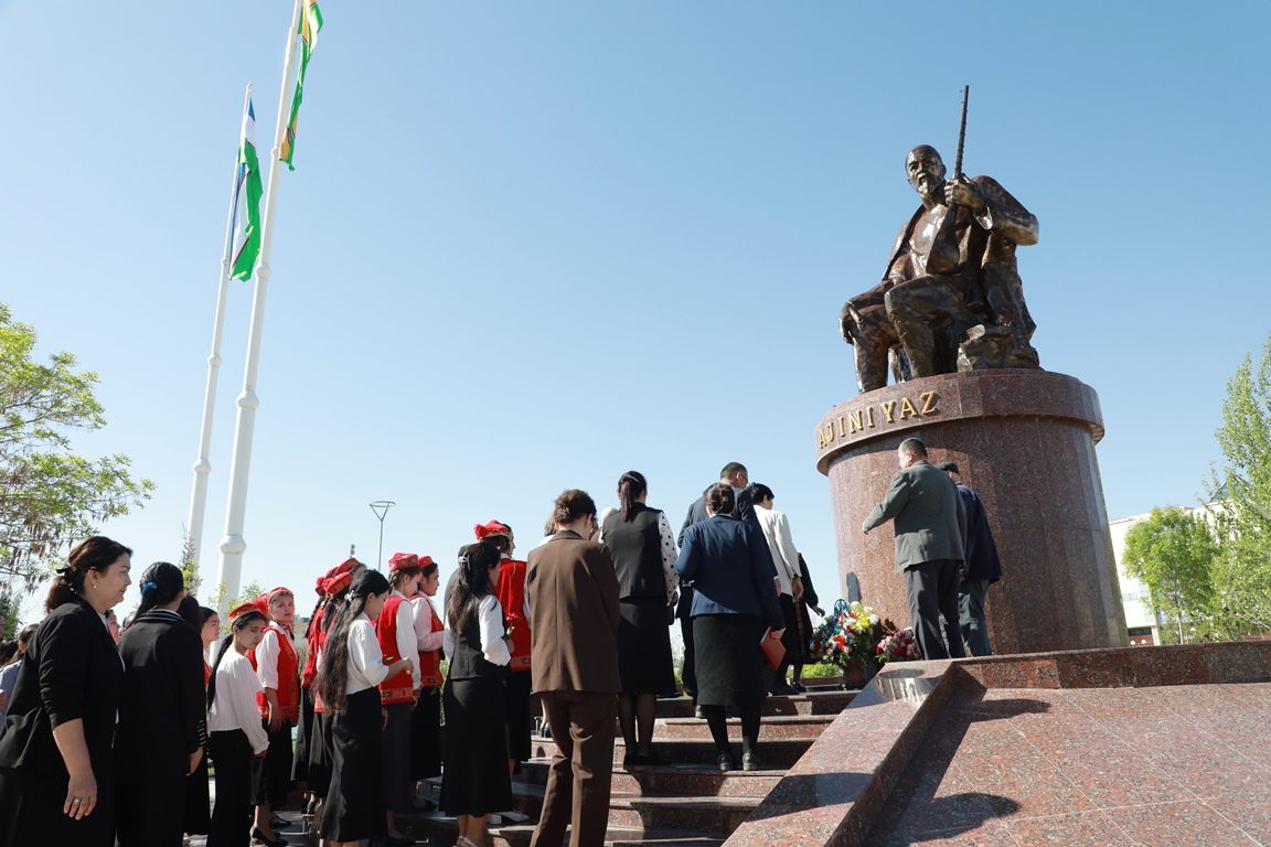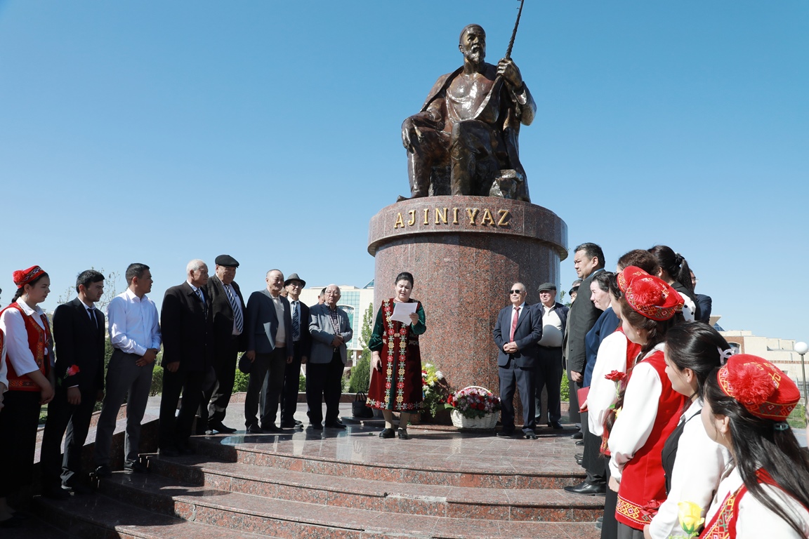 Búgin, 10-aprel kúni paytaxtımız Nókis qalasında qaraqalpaq klassikalıq ádebiyatınıń kórnekli wákili, ullı shayır Ájiniyaz Qosıbay ulınıń esteligine gúlsheńberler qoyıldı.