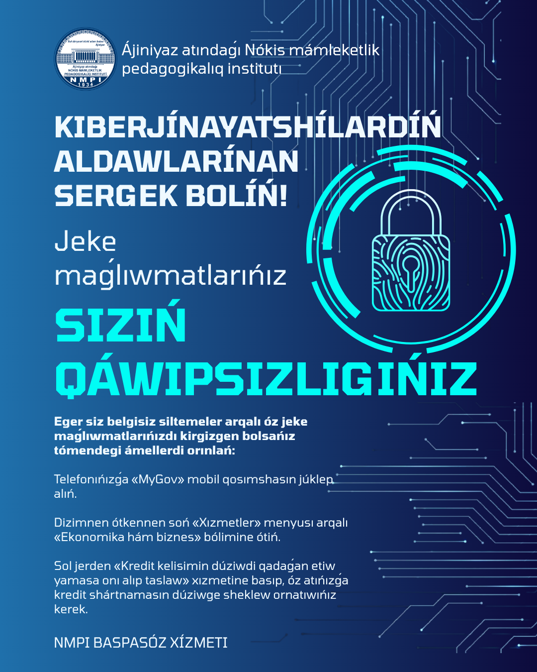 Házirgi waqıtta xalqımız, ásirese, jaslar arasında belgisiz siltemeler arqalı arzımaǵan pul esesine ózleriniń jeke maǵlıwmatların óz qolları menen kirgizip atırǵan jaǵdaylar jiyi ushıraspaqta.