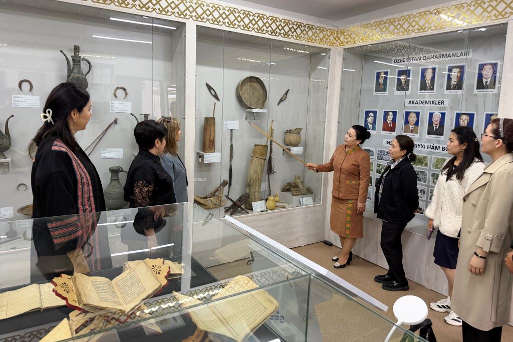 Ilajdan soń miymanlar instituttaǵı Ájiniyaz Qosıbay ulınıń 200 jıllıǵı múnásibeti menen shólkemlestirilgen muzeyde bolıp, bul jerde qaraqalpaq xalqınıń tariyxı, mádeniyatı, ádebiyatı haqqında bahalı maǵlıwmatlarǵa iye boldı.