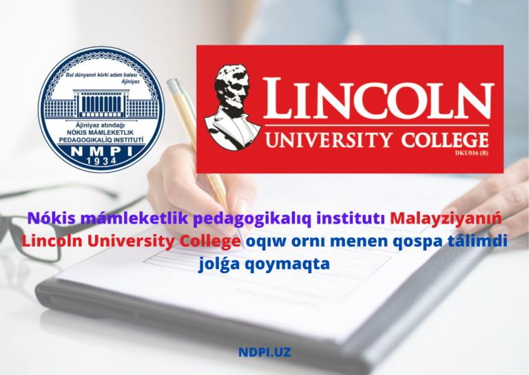 Jańalıq! Nókis mámleketlik pedagogikalıq institutı Malayziyanıń Lincoln University College oqıw ornı menen qospa tálimdi jolǵa qoymaqta