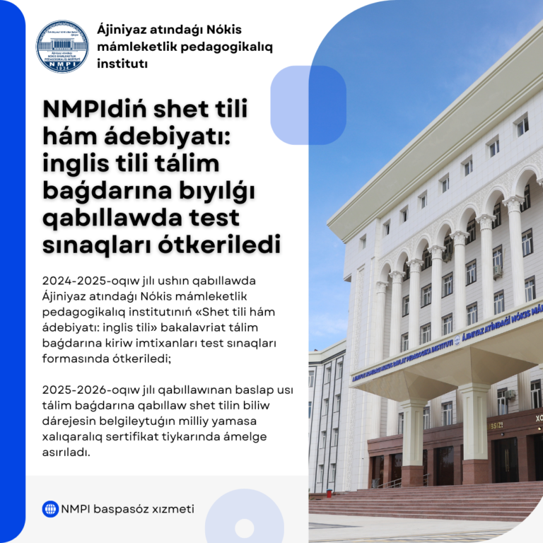 NMPIdiń shet tili hám ádebiyatı: inglis tili tálim baǵdarına bıyılǵı qabıllawda test sınaqları ótkeriledi
