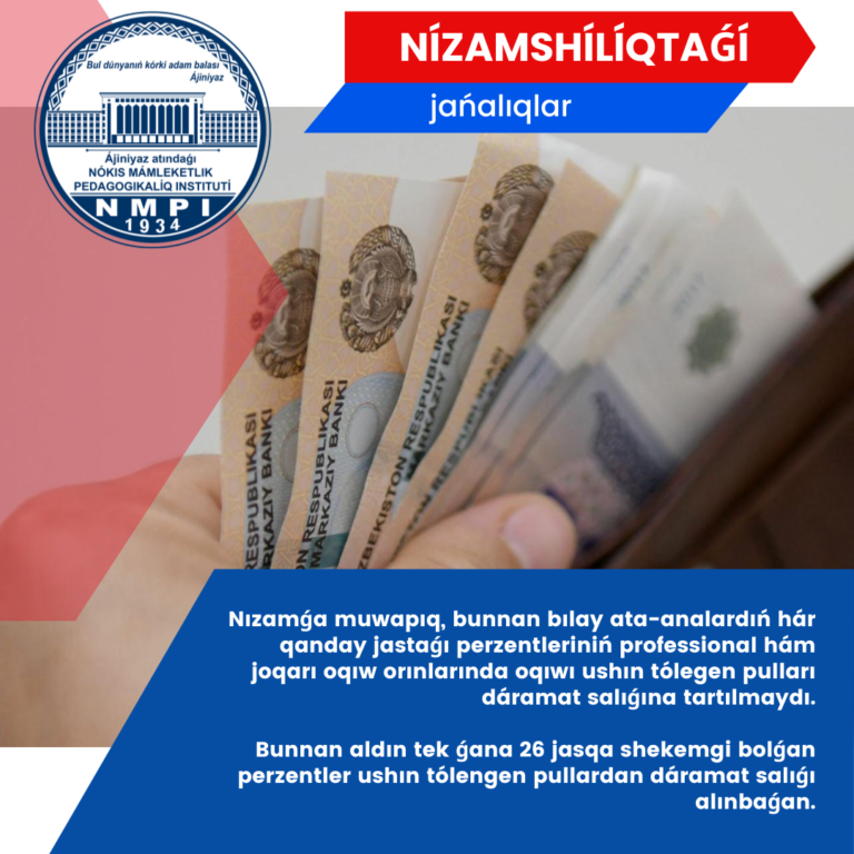 Ata-analardıń hár qanday jastaǵı perzentleriniń kontrakti ushın tólegen pulları dáramat salıǵına tartılmaydı