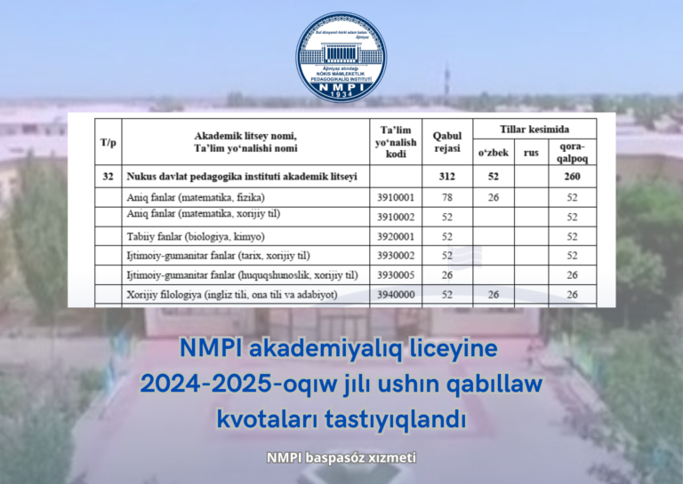 NMPI tayanısh doktorantura (PhD) qánigeliklerine kiriw imtixanlarınıń nátiyjeleri járiyalandı