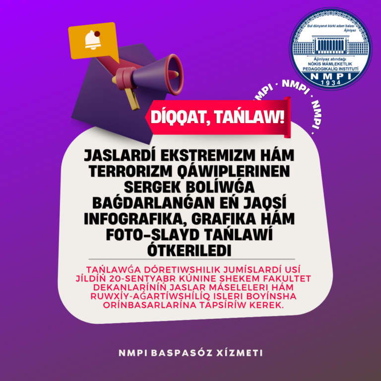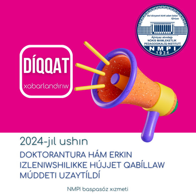 Ájiniyaz atındaǵı Nókis mámleketlik pedagogikalıq institutı tómendegi qánigelikler boyınsha talabanlardı 2024-jıl ushın tayanısh doktoranturaǵa (PhD) qabıllaytuǵının daǵazalaydı!