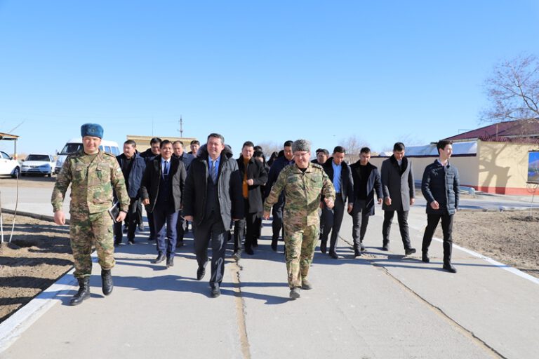 Institut professor-oqıtıwshıları hám studentleri áskeriy bólimdegi jaratılǵan sharayatlar menen tanıstı