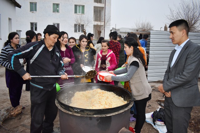 Дене мәденият факультети басламасы менен студентлер турақ жайы студентлери ушын палаў тарқатылды