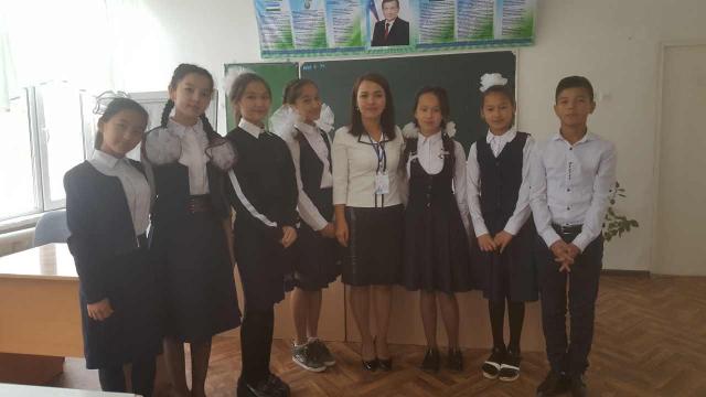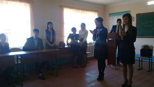 Филология факультети әмелиятшы студентлери 32-санлы мектепте Кеңесбай Алламбергенов пенен ушырасыў шөлкемлестирди