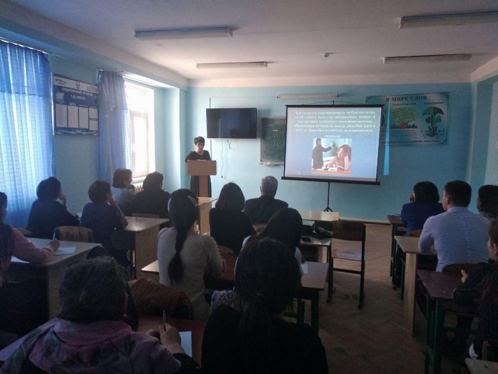 С научными докладами выступили профессор кафедры К.М.Кощанов на тему «К вопросу написания научно-исследовательской работы», доцент кафедры Г.Ж. Алламуратова на тему «Что нас ждет впереди в системе образования» и студент 2 «А» курса Мубараков Муса на тему «Путь студента к науке».