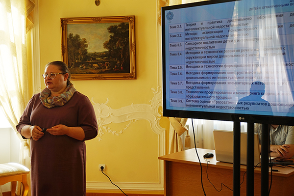 Во встрече приняли участие директор института дефектологического образования Александр Антропов, доцент кафедры олигофренопедагогики Елена Войлокова, директор института психологии Светлана Безгодова и заместитель директора института педагогики Ирина Гладкая. Они рассказали об учебной и научной деятельности каждого из подразделений.