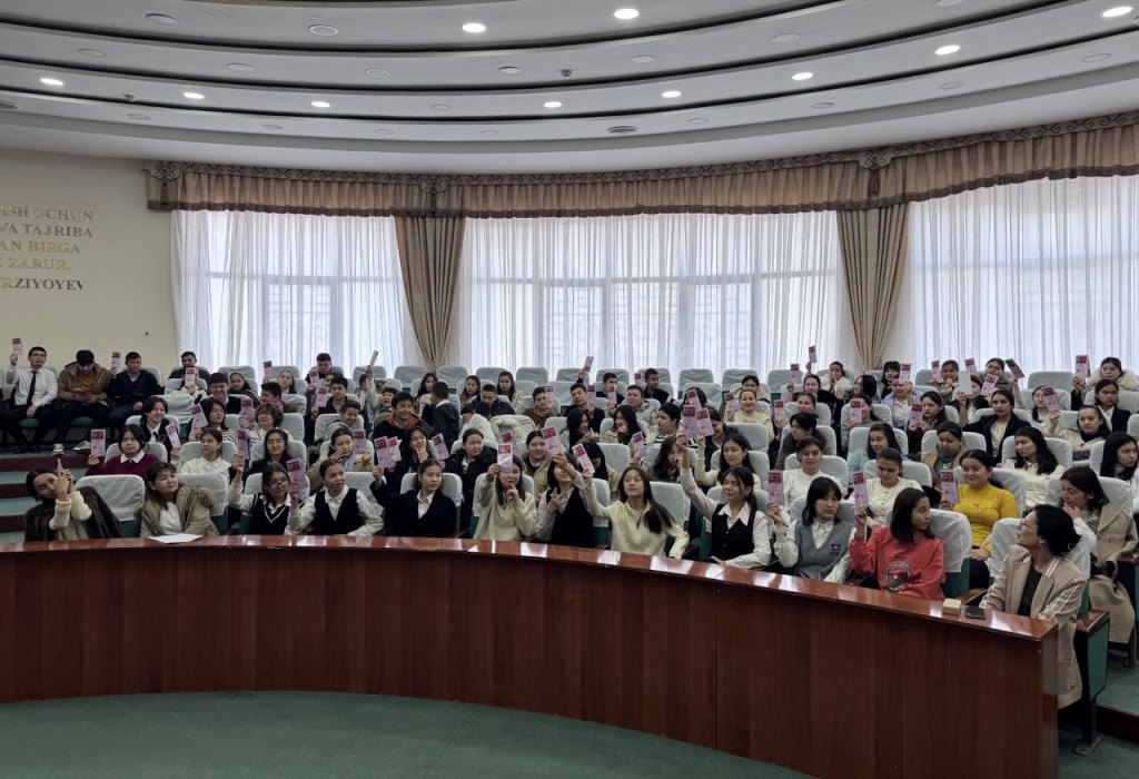 На встрече присутствовали учащиеся 8-10 классов школы №31 г. Нукуса и студенты 1 и 2 курсов Нукусского государственного педагогического института имени Ажинияза.
