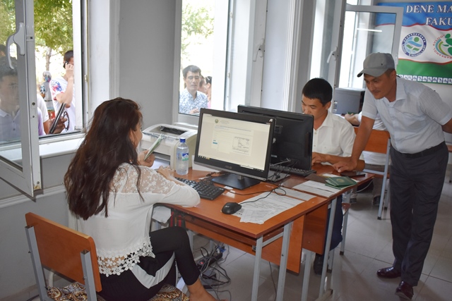 Абитуриентлар ва уларнинг ота-оналари учун қабул комиссияси жойлашган ерда 10 мутахассисдан иборат маслаҳат бўлими, ахборот-маълумот марказида 4 телефон рақами ҳамда 4 оператор, абитуриентлардан ҳужжатларни қабул қилиш учун 30 оператор, шунингдек, кутиш ўринлари, ошхона, салқин ичимликлар савдоси каби шароитлар яратилган.