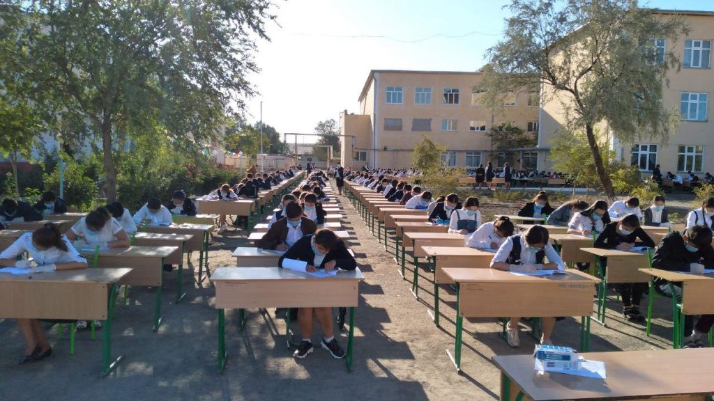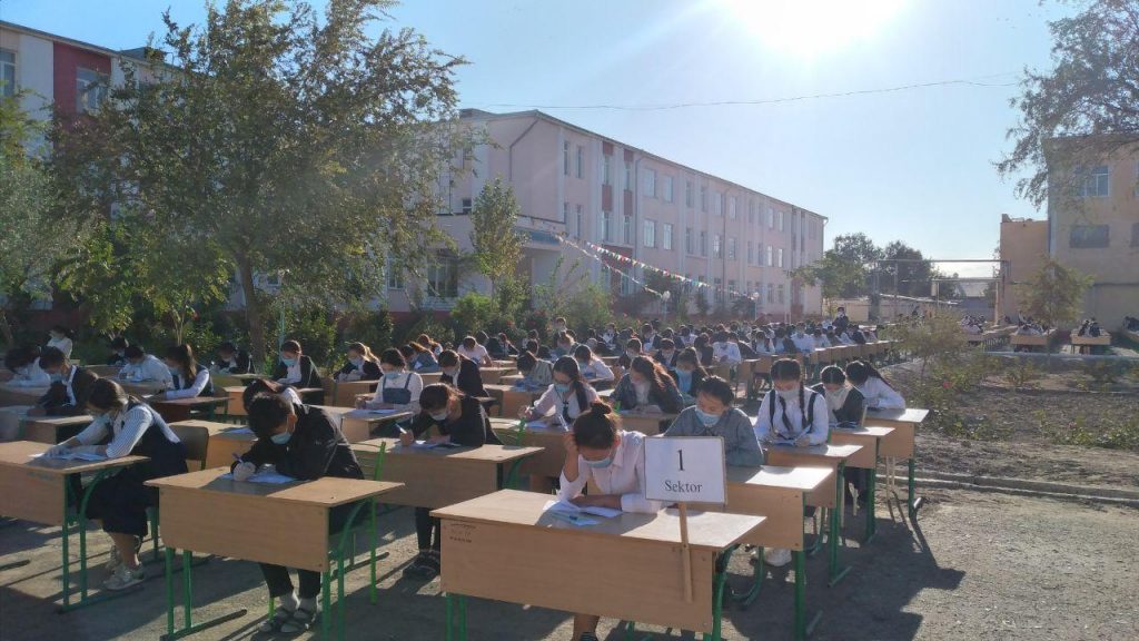 Имтиҳонлар очиқ майдонда ўтказилиб, карантин қоидаларига тўлиқ риоя қилган ҳолда ташкил этилди.
