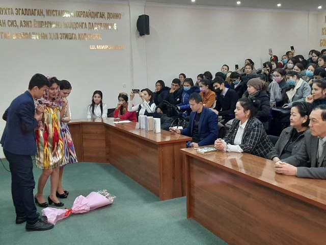 Adabiy-badiiy kechada O‘zbek tili kafedrasi dotsenti S.Jalilov, Oʻzbek adabiyoti kafedrasi dotsenti Sh.Aldashevalar ham qatnashib so‘z  oldilar.