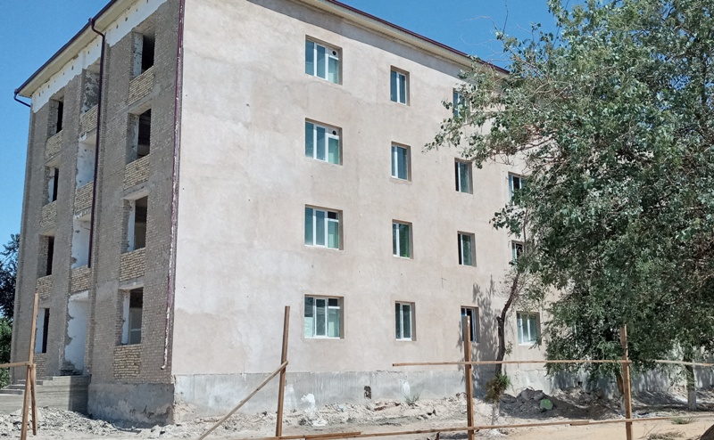Айни кунларда 80 нафарга яқин қурувчилар бинони таъмирлаш, пардозлаш,  монтаж, пайвандлаш ишларини олиб бормоқдалар.