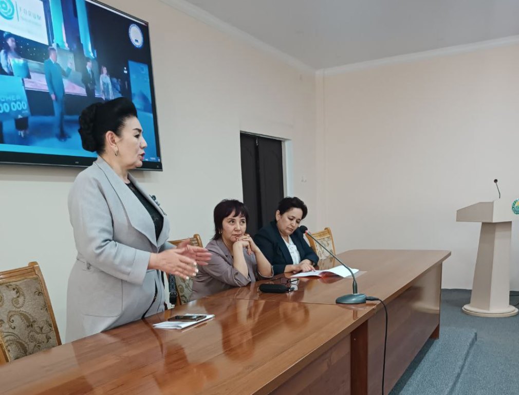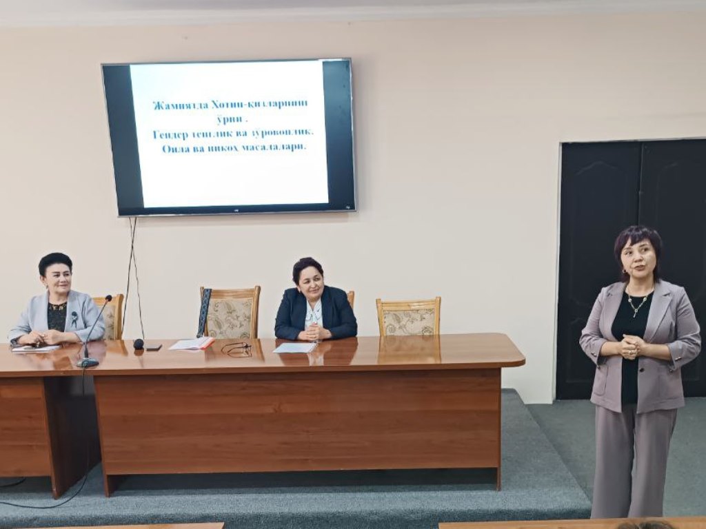 Dastlab ishchi guruh vakillari ishtirokida kichik majlislar zalida “Jamiyatda xotin-qizlarning o‘rni. Gender tenglik va zo‘ravonlik. Oila, nikoh masalalari” mavzusida davra suhbati tashkil qilindi. Shuningdek, institut bo‘ylab xotin-qizlarning ilm olishlari, sport bilan shug‘ullanishlari va hunar o‘rganishlari uchun yaratilgan shart-sharoitlar bilan tanishdi.