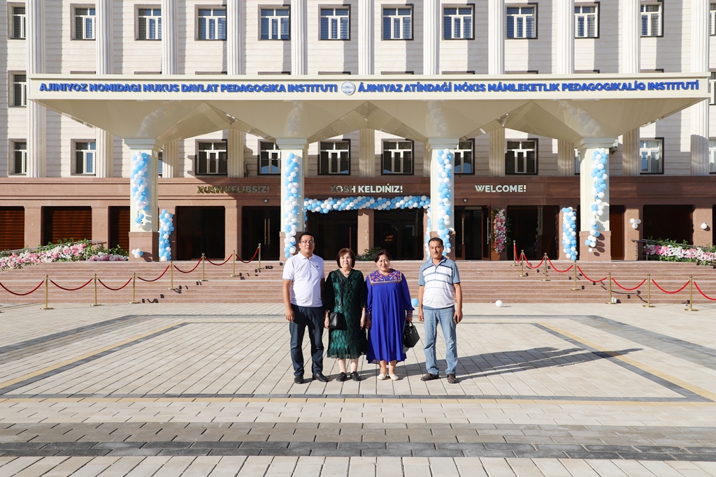 Bugun, 29-avgust kuni ular Ajiniyoz nomidagi Nukus davlat pedagogika institutining foydalanishga topshirilgan yangi oʻquv binosida boʻlib, bu yerda ilmiy-pedagogik faoliyat olib borish uchun yaratilgan sharoitlar bilan tanishdi hamda yuqori baho berdi.