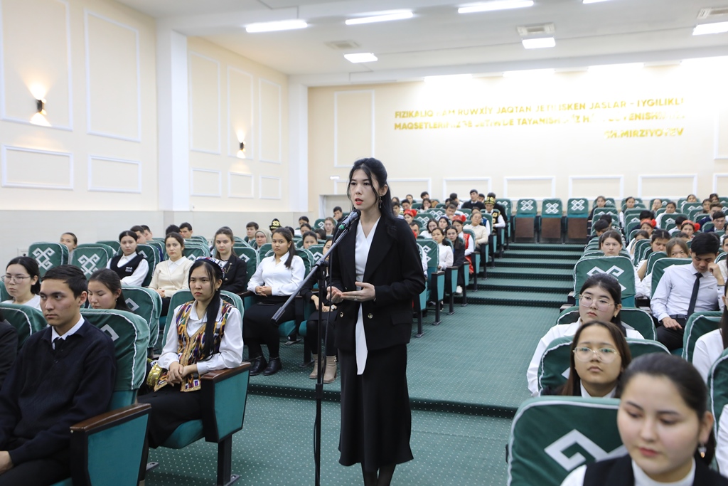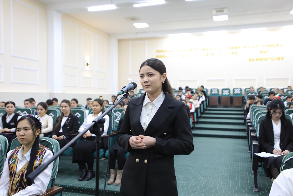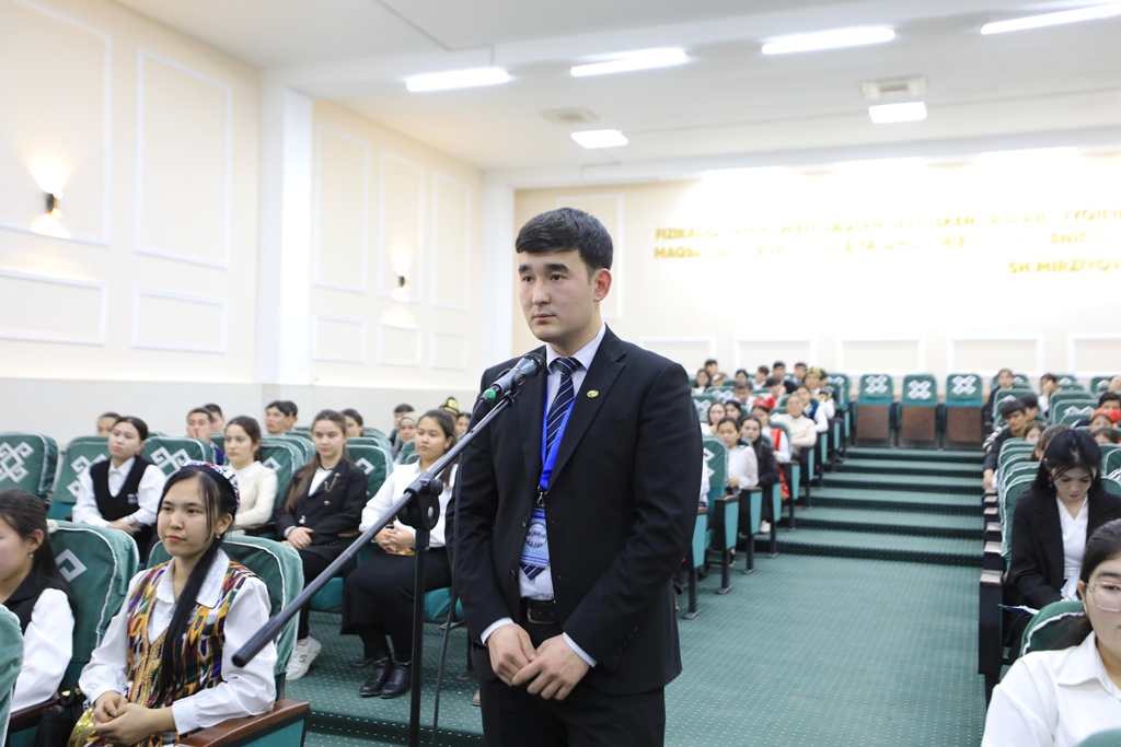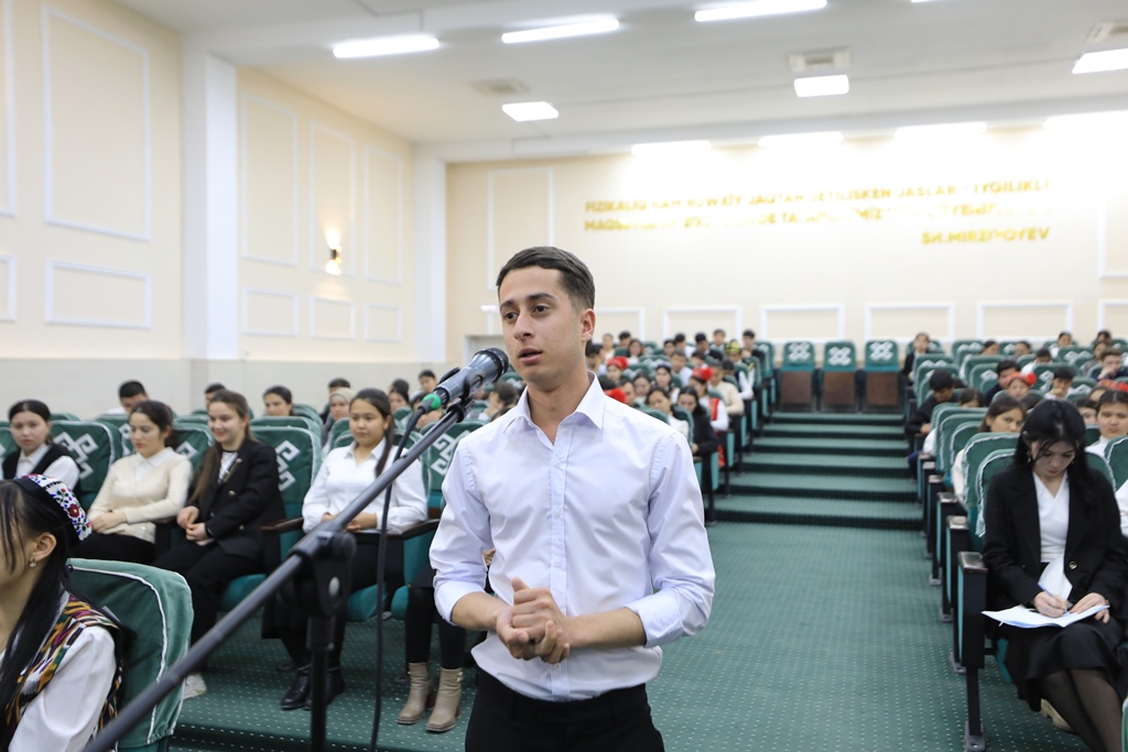 Dastlab rektor yoshlarga institutda yaratilayotgan sharoitlar, amalga oshirilayotgan islohotlarning amaliy natijalari, yoshlar uchun yangi imkoniyatlar, loyiha va dasturlar haqida ma’lumot berib, talaba-yoshlardan bu boradagi ishlarni yanada takomillashtirish maqsadida fikr-mulohazalarini bildirishlarini so‘radi.