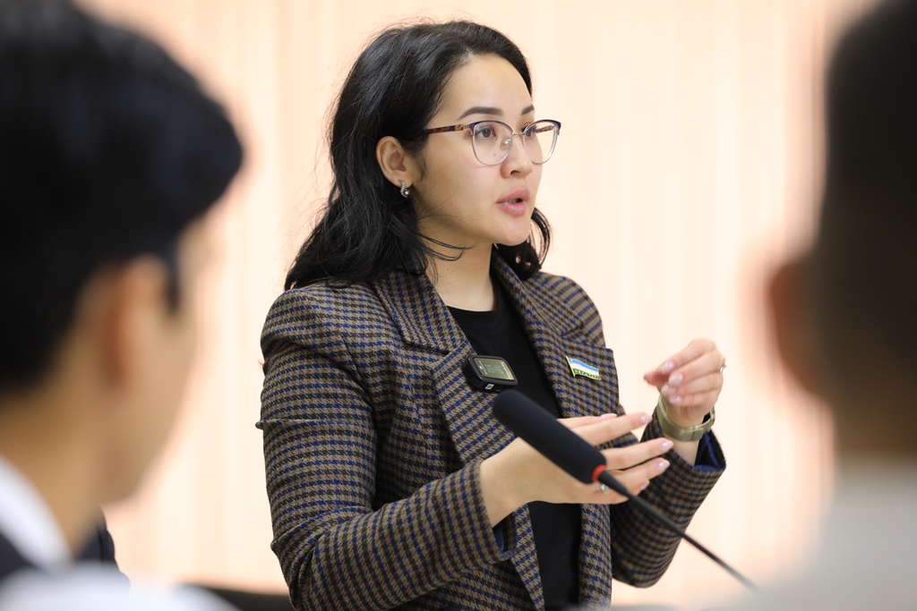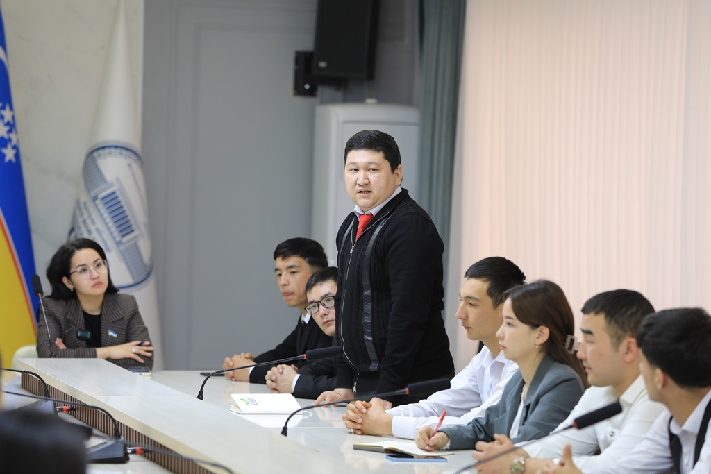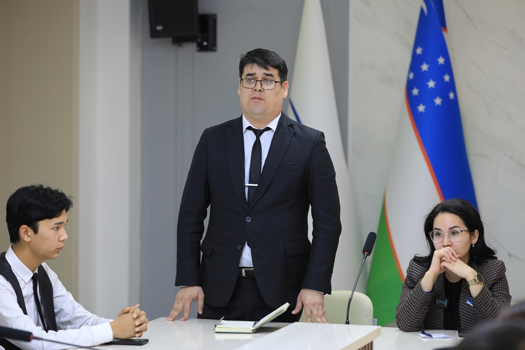 Yoshlar deputatga Oliy Majlis Qonunchilik palatasida normativ-huquqiy hujjatlarni qabul qilish jarayoni, yoshlarning takliflari asosida yo‘lga qo‘yilayotgan loyihalar to‘g‘risida o‘zlarini qiziqtirgan savollarga javoblar oldi.