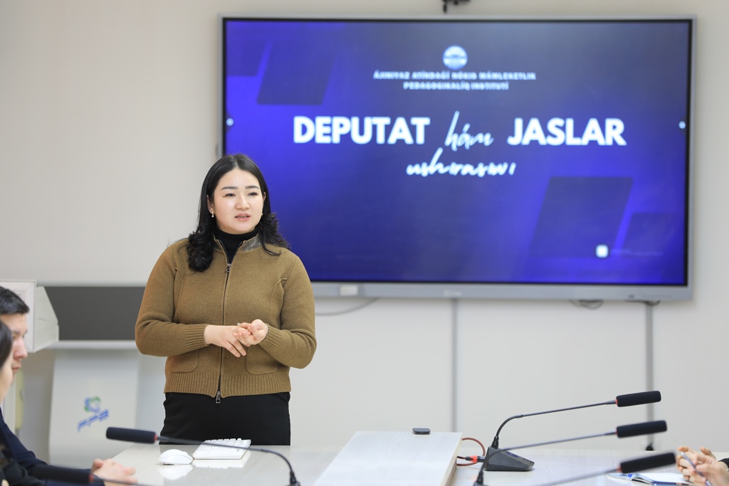 Ajiniyoz nomidagi Nukus davlat pedagogika institutida O‘zbekiston Respublikasi Oliy Majlisi Qonunchilik palatasi deputati, Yoshlar masalalari bo‘yicha komissiya raisi Shaxnoza Joldasova va institut faol talaba-yoshlarining uchrashuvi bo‘lib o‘tdi.