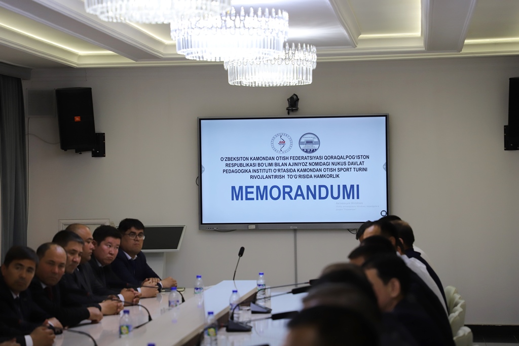 Tadbir doirasida O‘zbekiston kamondan otish federatsiyasi Qoraqalpog‘iston Respublikasi bo‘limi bilan institut o‘rtasida kamondan otish sport turini rivojlantirish maqsadida hamkorlik memorandumi imzolandi.