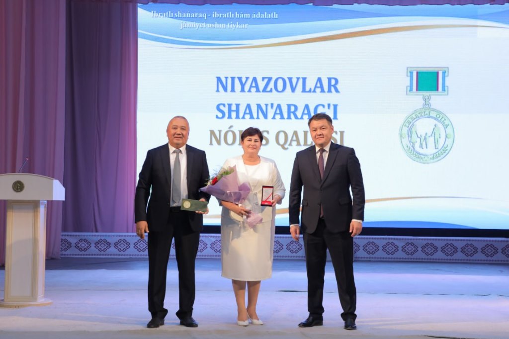 Tantanali tadbirda Niyazovlar oilasi – Ajiniyoz nomidagi Nukus davlat pedagogika instituti Jismoniy madaniyat fakulteti sport fanlari kafedrasi mudiri, professor Asqar Niyazov va uning turmush o‘rtog‘i, Qoraqalpog‘iston Respublikasi Jo‘qorg‘i Kengesi deputati Olga Niyazovaga “Ibratli oila” ko‘krak nishoni topshirildi.