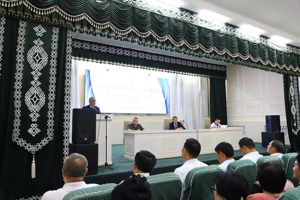 Sohalarda korrupsiya holatlariga qarshi kurashish borasida amalga oshirilayotgan huquqiy-tezkor tadbirlardan tayyorlangan videorolik ishtirokchilar e’tiboriga havola etildi.