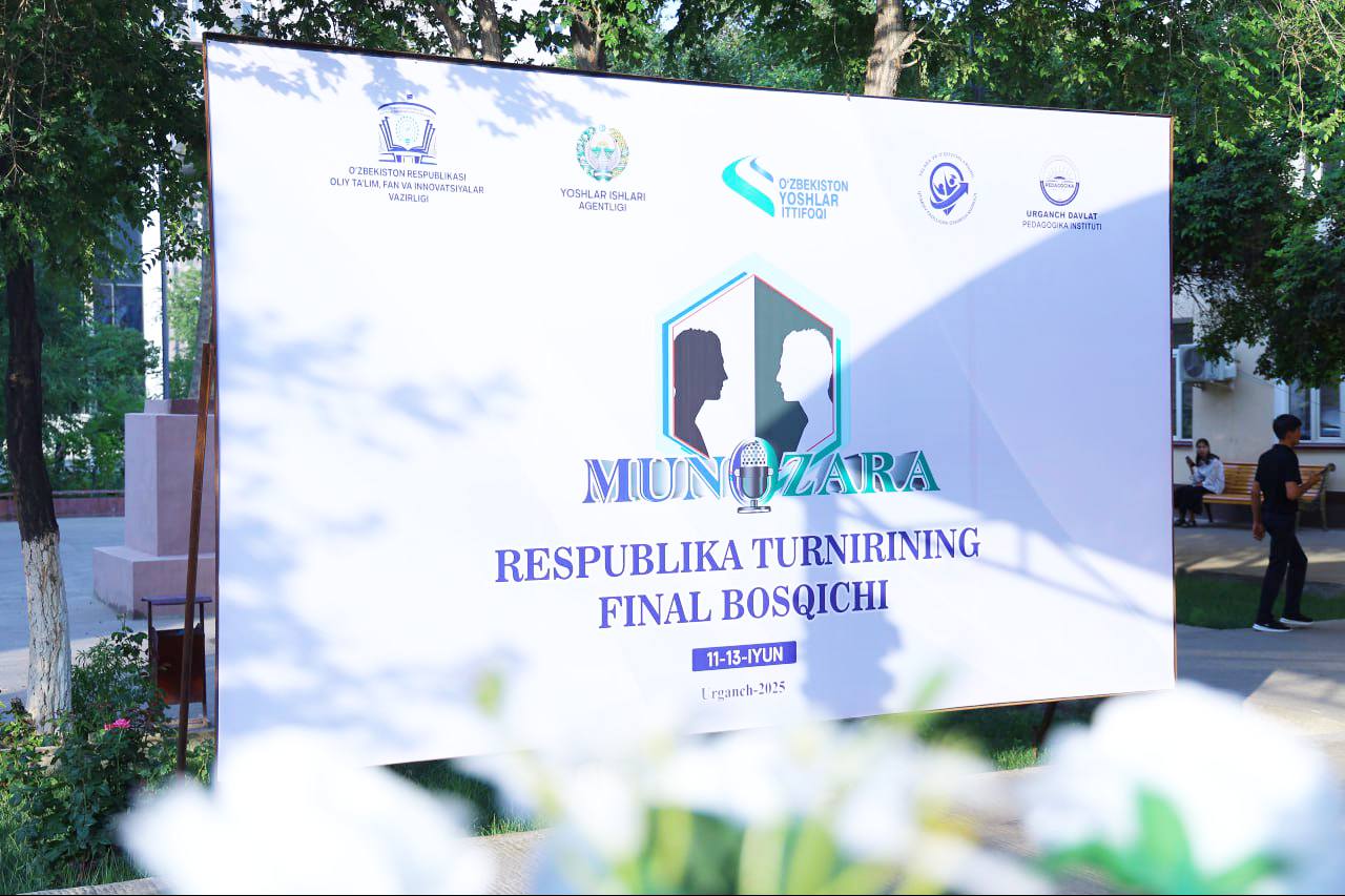 Joriy yilning 11-13-iyun kunlari Urganch davlat pedagogika institutida O‘zbekiston Respublikasidagi barcha oliy ta’lim muassasalari talabalari o‘rtasida o‘tkazilayotgan “Munozara” intellektual turnirining respublika bosqichi bo‘lib o‘tmoqda.