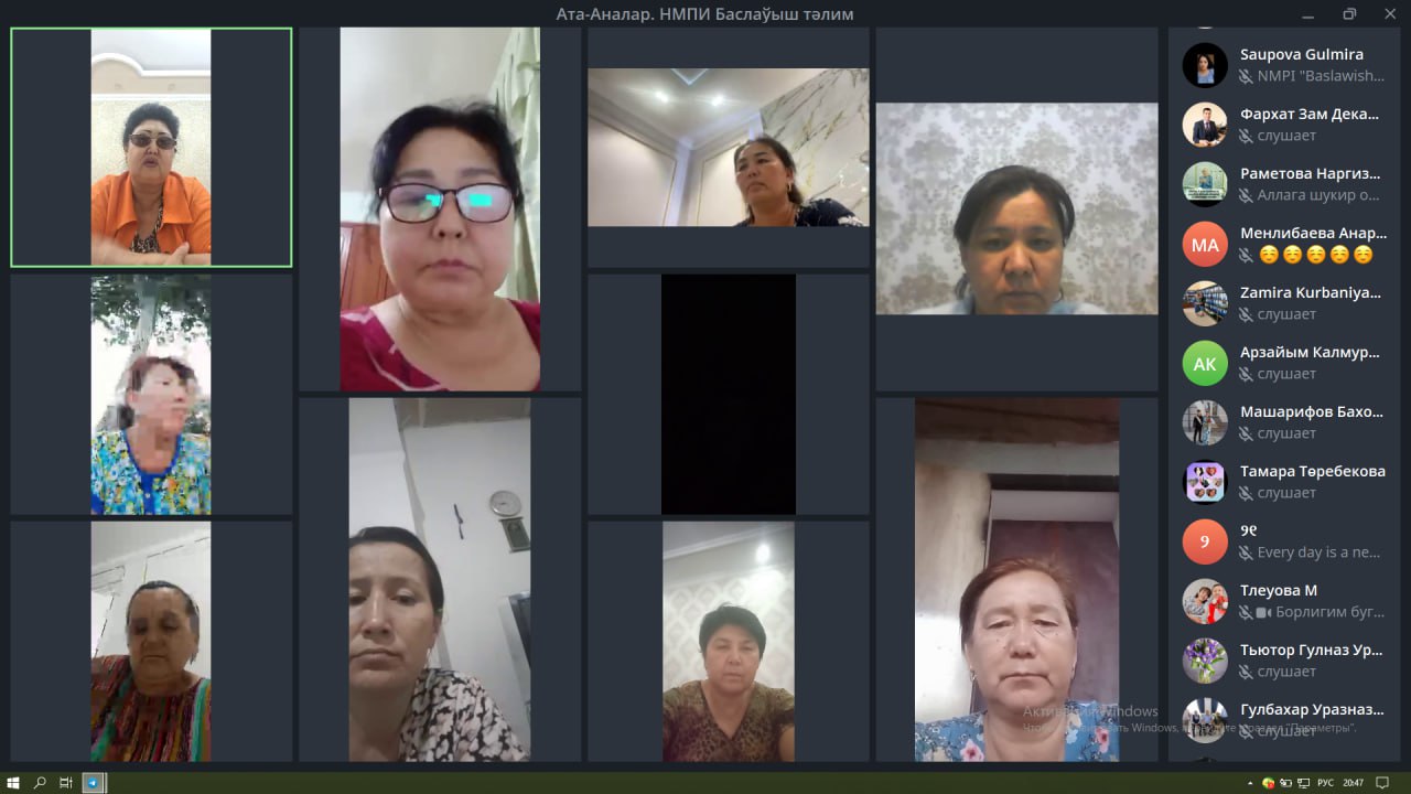 Ajiniyoz nomidagi Nukus davlat pedagogika instituti Boshlang‘ich ta’lim hamda Turkiy tillar fakultetlarida tahsil olayotgan talaba-yoshlar, shu jumladan, bitiruvchi kurs talabalarining ota-onalari bilan onlayn formatda suhbatlar o‘tkazildi.