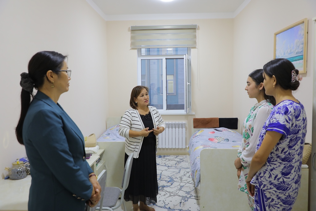 Ajiniyoz nomidagi Nukus davlat pedagogika institutida talabalarning ta’lim olishi va yashashi uchun yaratilgan sharoitlarni yanada yaxshilash, ularning muammolarini o‘rganish va fikr-mulohazalarini tinglash maqsadida Filologiya fakulteti dekani Gulbahar Begmuratova 3-sonli talabalar turar joyiga tashrif buyurdi.