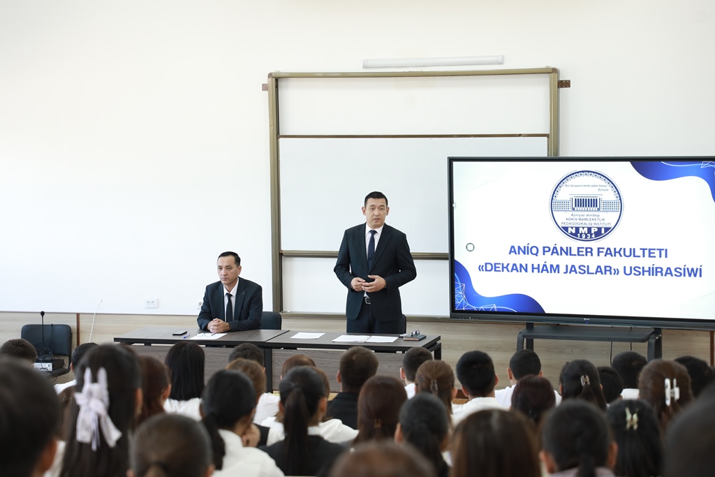 Ajiniyoz nomidagi Nukus davlat pedagogika instituti Aniq fanlar fakultetida talabalar bilan ochiq suhbat tarzidagi “Dekan va talaba-yoshlar” uchrashuvi tashkil etildi.