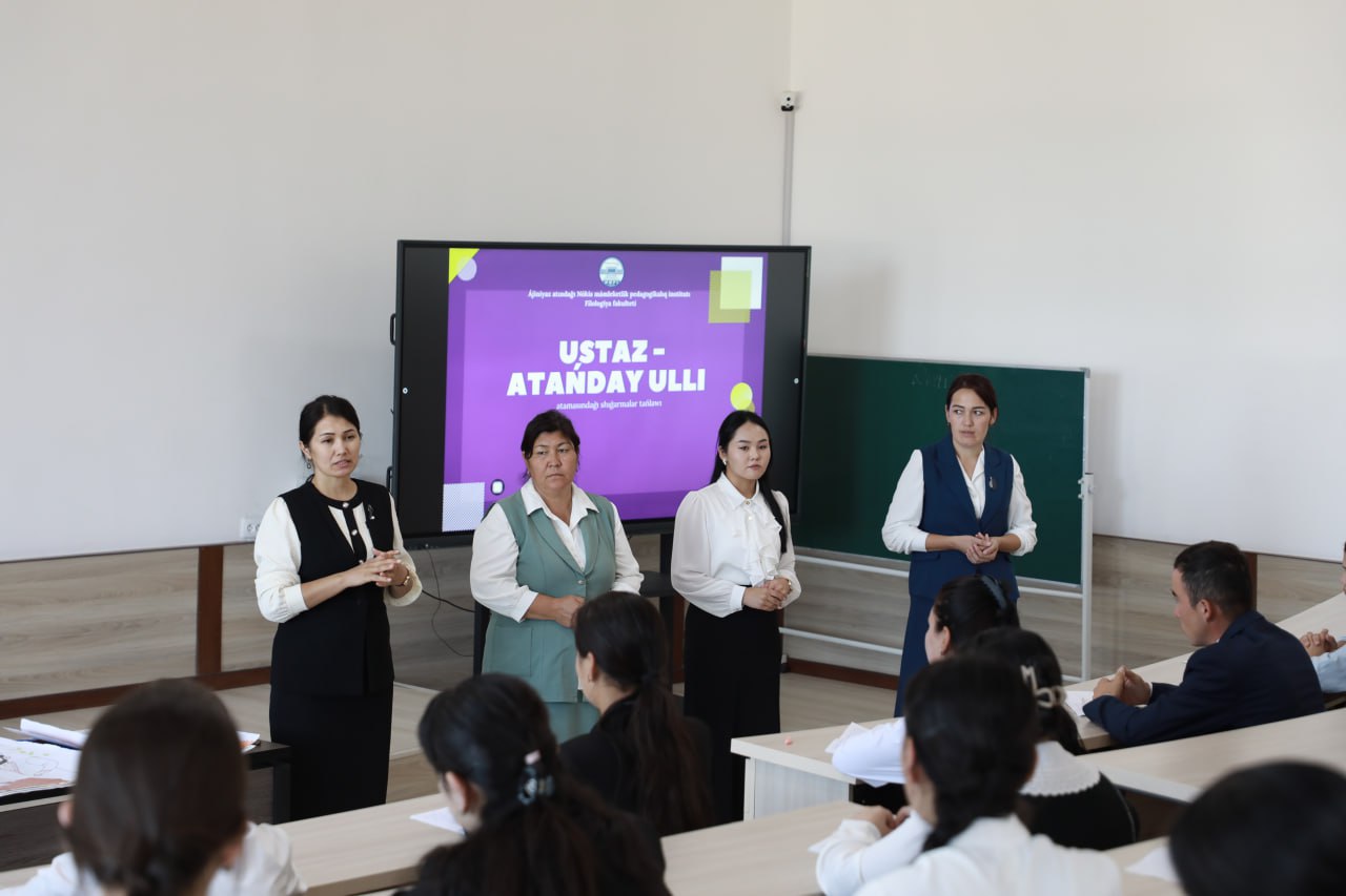 Ajiniyoz nomidagi Nukus davlat pedagogika instituti Filologiya fakultetida O‘qituvchi va murabbiylar kuni munosabati bilan talaba-yoshlar o‘rtasida “Ustoz – otangday ulug‘” mavzusida tanlovlar o‘tkazildi.