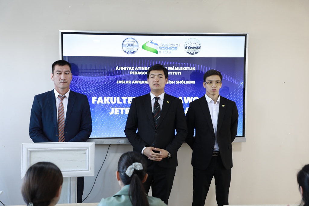 Ajiniyoz nomidagi Nukus davlat pedagogika institutida talaba-yoshlarning ijtimoiy faolligini oshirish, ularning tashabbuskorligini qo‘llab-quvvatlash hamda o‘z fikrini erkin ifoda eta oladigan, liderlik fazilatiga ega yoshlarni aniqlash maqsadida fakultetlarda O‘zbekiston yoshlar ittifoqi yetakchilari va talabalar kengashi rahbarlarini saylash jarayonlari tashkil etildi.