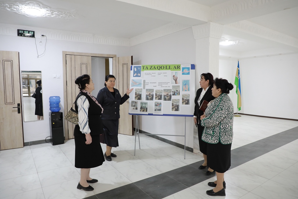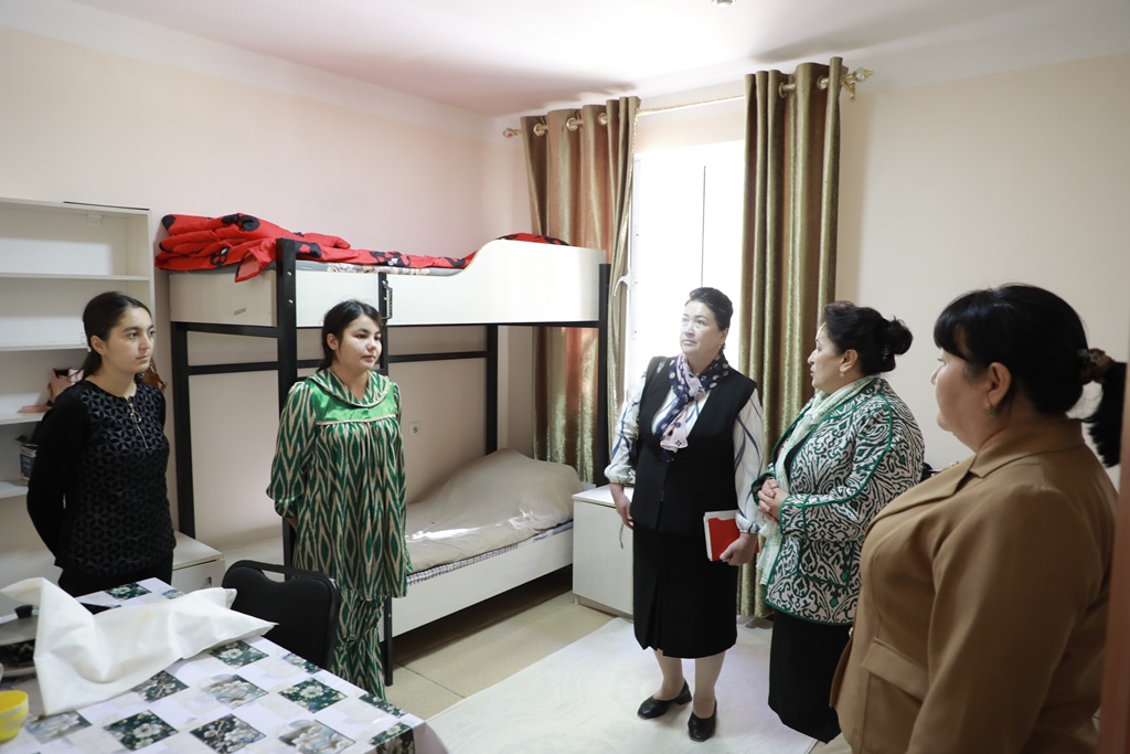 Tadbir davomida Oliy ta’lim, fan va innovatsiyalar vazirligi vakillari Gulchehra Reymbayeva va Shoira Nurillayeva tomonidan o‘quv binolari, talabalar turar joylari, oshxona va sanitariya-gigiyena xonalarining holati o‘rganilib, tozalik, suv ta’minoti, gigiyenik vositalar bilan ta’minlanish darajasi va sanitariya qoidalariga rioya qilish holati tahlil qilindi.