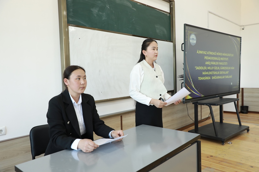 Ajiniyoz nomidagi Nukus davlat pedagogika instituti Aniq fanlar fakultetida xalqimizning ma’naviy uyg‘onishi va milliy davlatchilik asoslarini mustahkamlashga munosib hissa qo‘shgan jadidchilik harakati va uning mashhur namoyondalarining ezgu ishlarini talaba-yoshlar orasida keng targ‘ib qilish maqsadida “Jadidlar: milliy o‘zlik, istiqlol va davlatchilik asoslari” mavzusida eng yaxshi asarlar tanlovi bo‘lib o‘tdi.