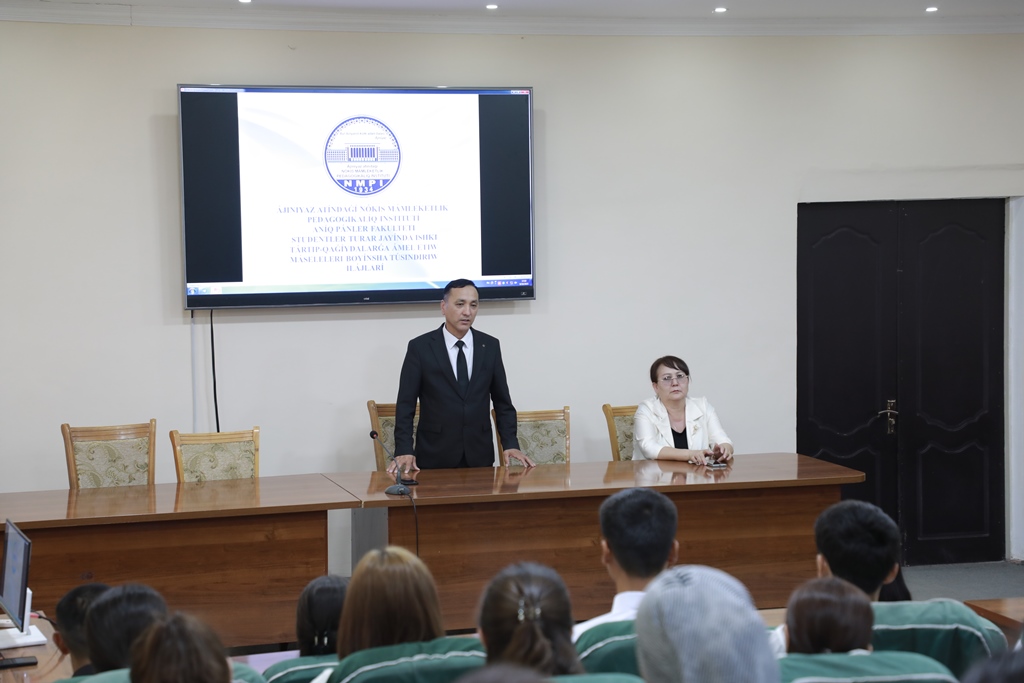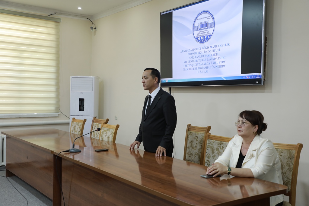 Ajiniyoz nomidagi Nukus davlat pedagogika instituti Aniq fanlar fakultetida 2-sonli va “Argoniya” davlat-xususiy sheriklik asosida faoliyat yuritayotgan talabalar turar joylarida yashovchi talaba-yoshlar bilan uchrashuv bo‘lib o‘tdi.