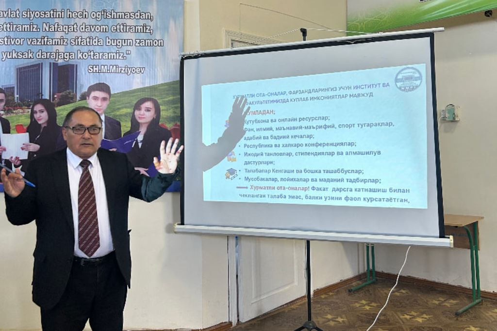 Ajiniyoz nomidagi Nukus davlat pedagogika instituti Ellikqalʼa fakultetida talabalarning ota-onalari bilan uchrashuv bo‘lib o‘tdi.