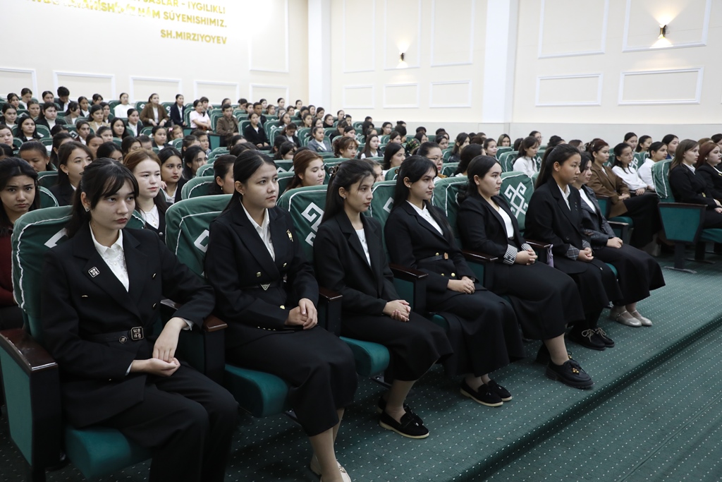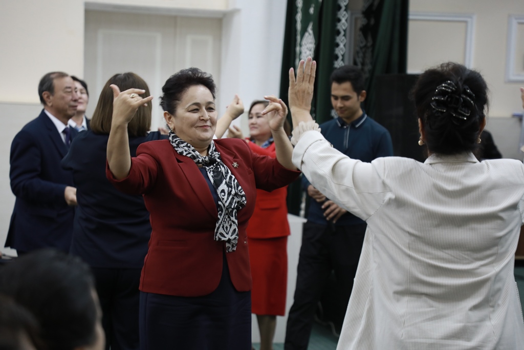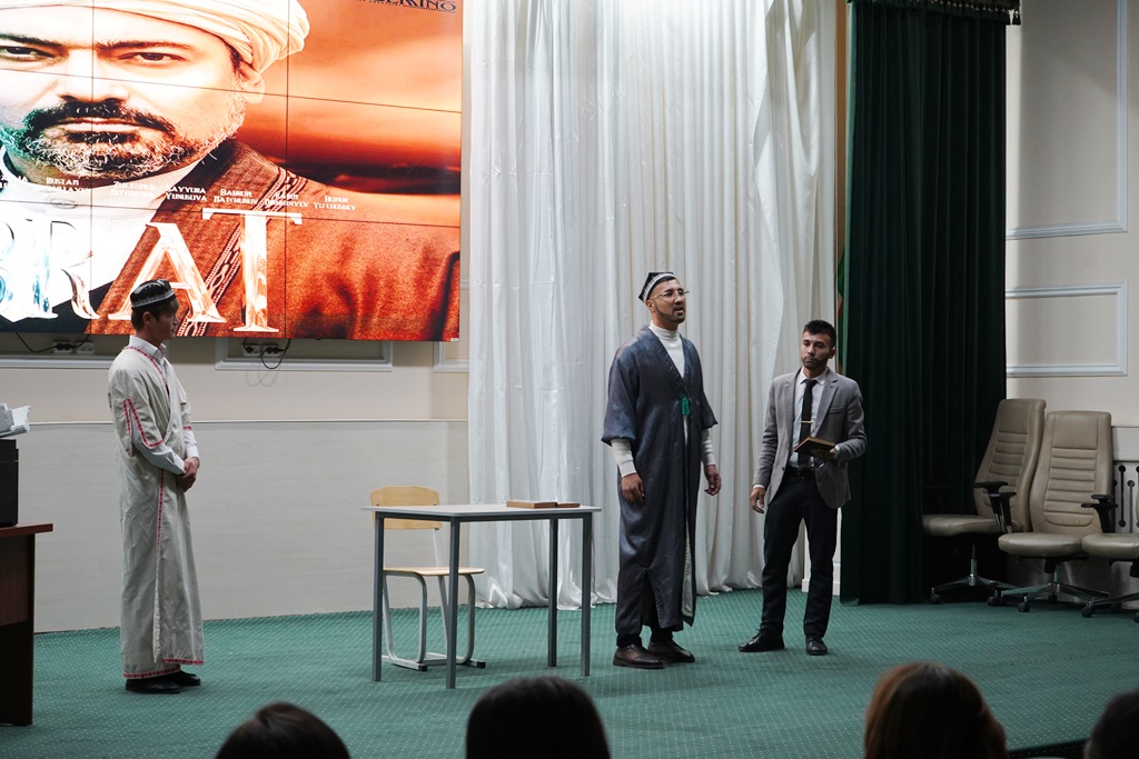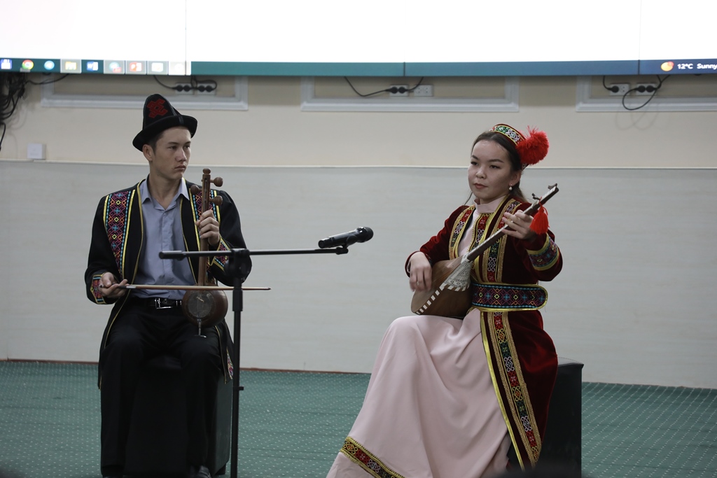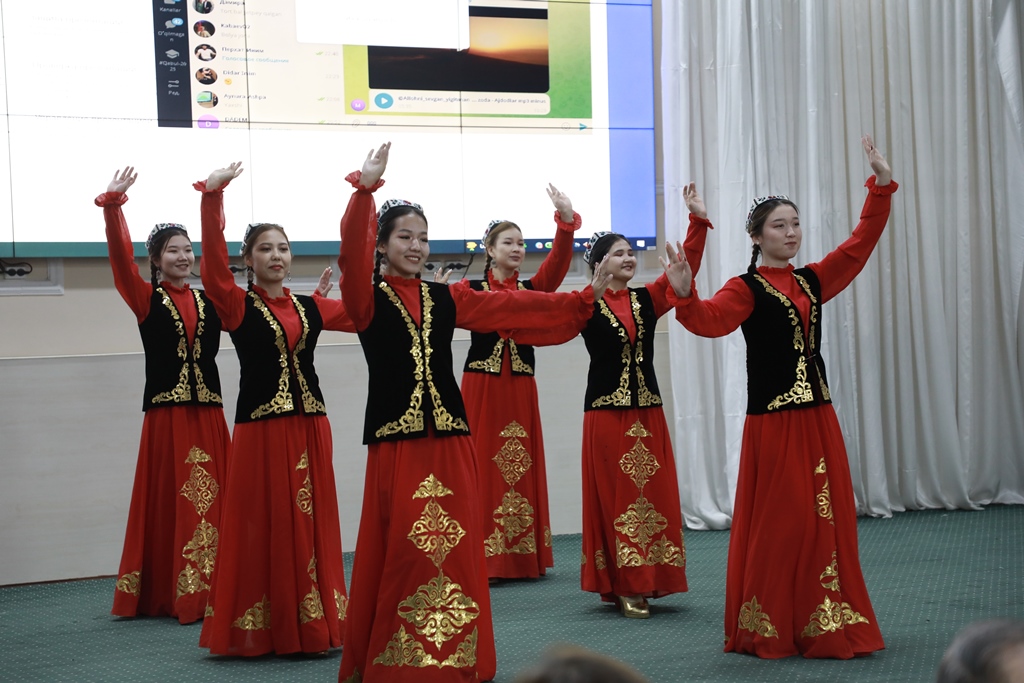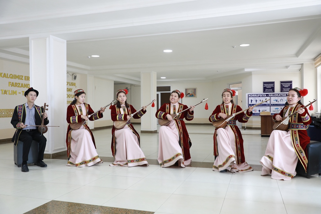 Tadbir institutning “To‘maris” xalq ansambli, “Siy perde” va “Tarannum” ansambllari a’zolari, filologiya fakultetining iqtidorli talabalari, shuningdek, hamkor maktab o‘quvchilari ijrosidagi bayram konserti bilan davom etdi.