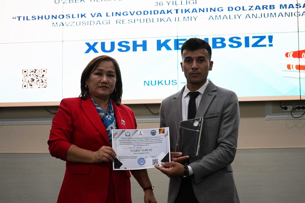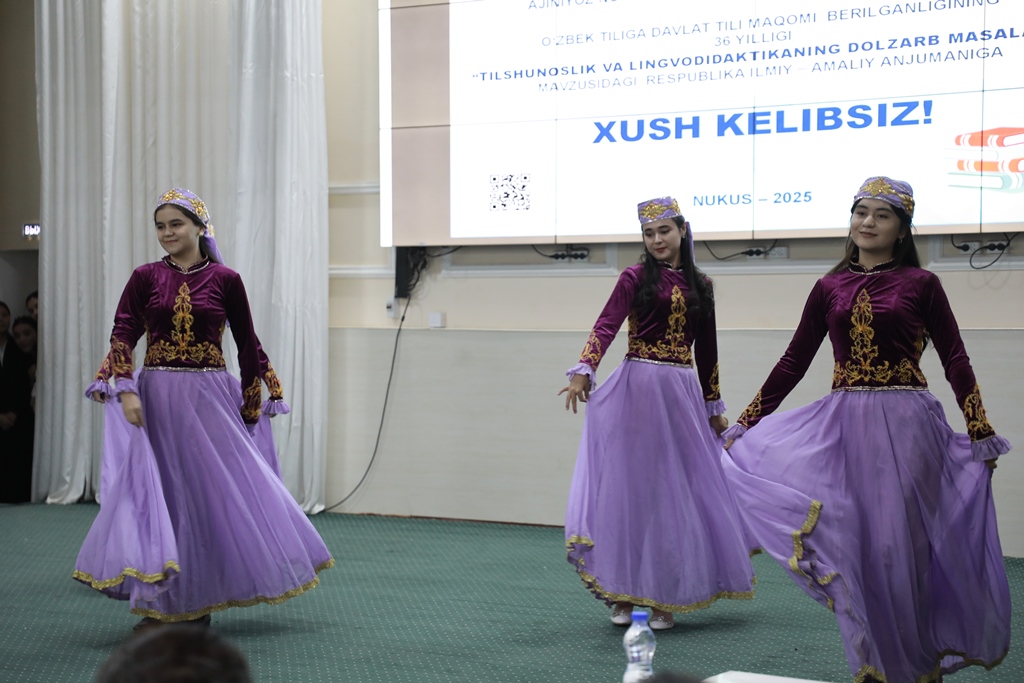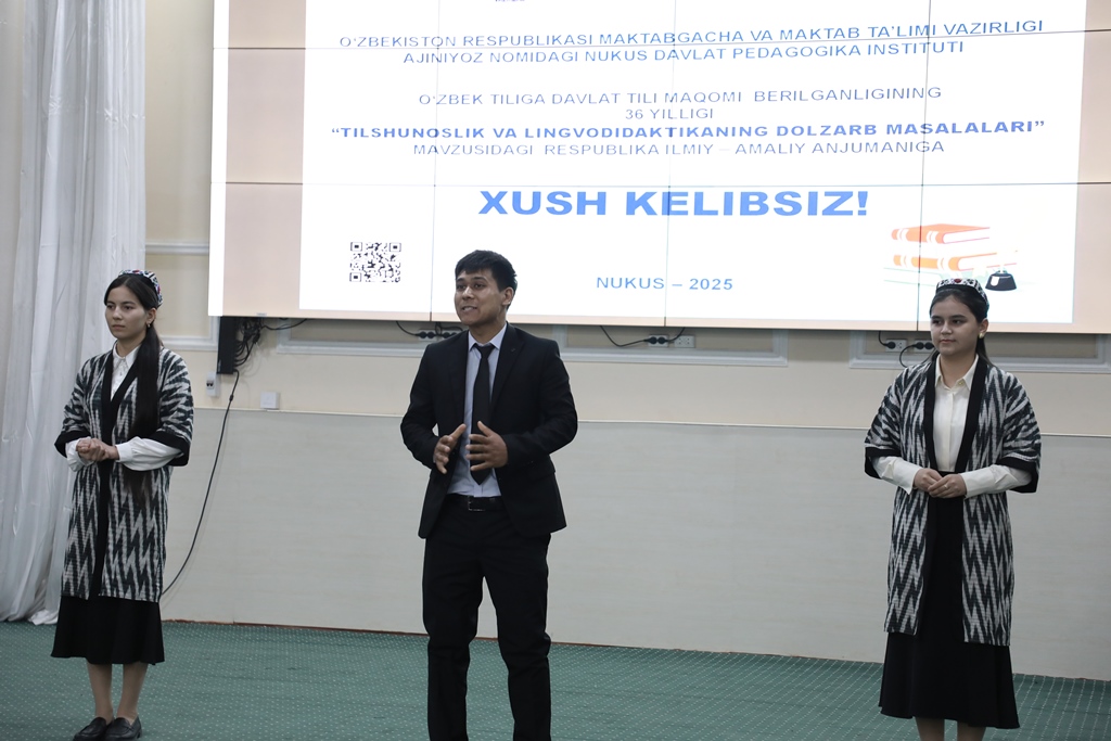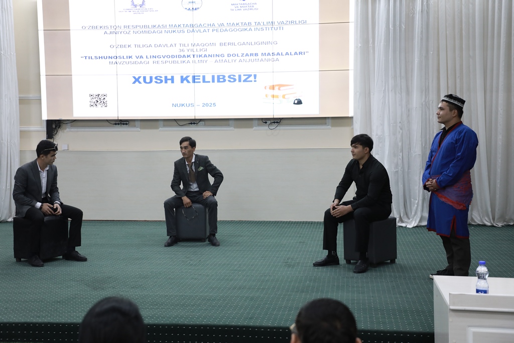 O‘zbekiston Respublikasining “Davlat tili to‘g‘risida”gi Qonuni qabul qilinganligining 36 yilligi hamda 21-oktyabr – O‘zbek tili bayrami kuni munosabati bilan Ajiniyoz nomidagi Nukus davlat pedagogika institutida “Tilshunoslik va lingvodidaktikaning dolzarb masalalari” mavzusida respublika ilmiy-amaliy konferensiyasi va bayram konserti tashkil etildi.