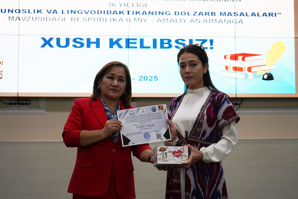 Konferensiyada institutning qoraqalpoq tili kafedrasi professori A.Pirniyazova, o‘zbek tili kafedrasi dotsenti A.Sultanova, ushbu kafedra doktoranti A.Kamalov o‘zbek tilining jahon tillari orasidagi o‘rni, turkiy tillarni o‘rganish masalalari va tilshunoslikning turli sohalariga oid ma’ruzalarini o‘qib berdi.