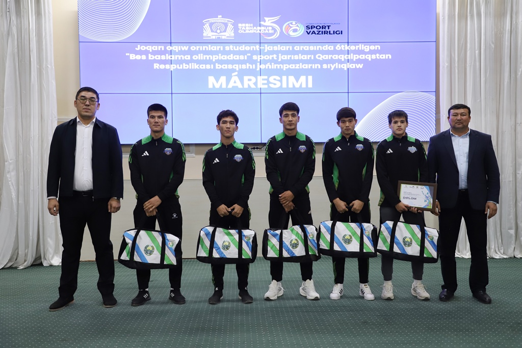 Bugun, 12-noyabr kuni Ajiniyoz nomidagi Nukus davlat pedagogika institutida Qoraqalpog‘iston Respublikasi Sport vazirligi, shuningdek, Oliy ta’lim, fan va innovatsiyalar vazirligi tomonidan oliy ta’lim muassasalari talabalari o‘rtasida o‘tkazilgan “Besh tashabbus olimpiadasi” sport musobaqalarining Qoraqalpog‘iston Respublikasi bosqichi g‘oliblarini taqdirlash marosimi bo‘lib o‘tdi.